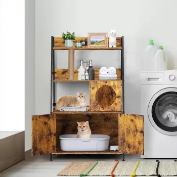 Large Cat Litter Box Enclosure with Cushion Bed, Scoop & Hidden Cabinet Design