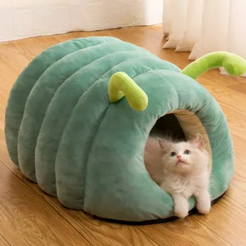 Cute Caterpillar Plush Cat Bed – Warm Foldable Pet Tent for Cats & Small Dogs
