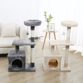 Small Cat Tower with Scratching Post for Indoor Cats – Three-Tier Cat Condo